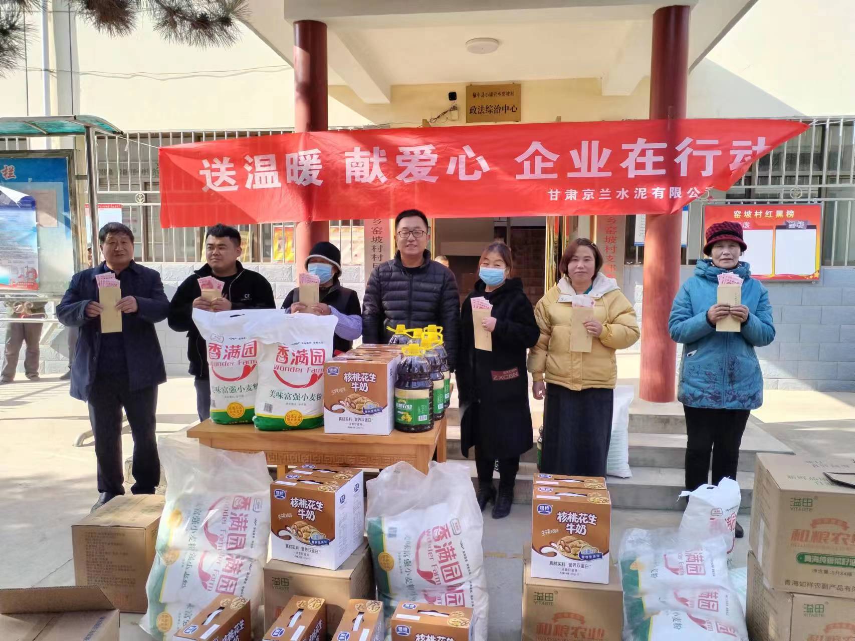 歲寒情更濃,牽掛暖人心。在春節(jié)來(lái)臨之際,甘肅京蘭水泥有限公司黨支部在企業(yè)所在地小康營(yíng)鄉(xiāng)、新營(yíng)鎮(zhèn)、高崖鎮(zhèn)開展了“送溫暖,獻(xiàn)愛(ài)心,企業(yè)在行動(dòng)”村企聯(lián)建活動(dòng),主要對(duì)涉企鄉(xiāng)鎮(zhèn)的老年人、困難家庭及罹患重病人員進(jìn)行了慰問(wèn)。此次活動(dòng)累計(jì)慰問(wèn)困難群眾122人(戶),發(fā)放面粉(10kg)122袋、食用油(5kg)122桶、純牛奶122箱、重病人員500元現(xiàn)金/人。